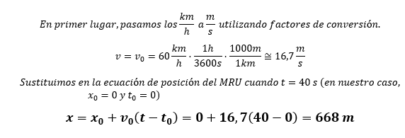 Solución: en 40 segundos el coche habrá recorrido 668 m.