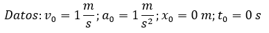 A diferencia del MRU, el MRUA cambia su velocidad, aunque a ritmo constante (ya que la aceleración es siempre la misma). Tanto en las ecuaciones de la posición como de la velocidad de un MRUA, tenemos el término de la velocidad inicial. Si en un problema se nos indica que un cuerpo parte del reposo, su velocidad inicial es 0. A continuación veremos un ejemplo: