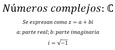 Los números complejos son aquellos que se expresan como la suma de un número real y un número imaginario (que es un múltiplo real de i, que veremos a continuación):