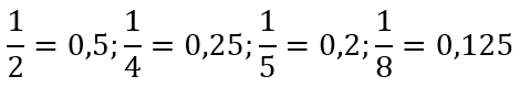 - Números fraccionarios: también llamadas fracciones. Están formados por un numerador a y un denominador b. Como las fracciones representan una división; si realizamos esta división nos aparecerán números racionales en base decimal. Los números racionales con parte decimal se clasifican en 3 tipos: