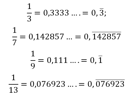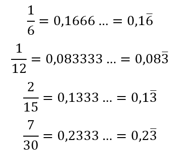NOTA: Los 'sombreritos' encima de una o más cifras decimales indica qué cifras se repiten.